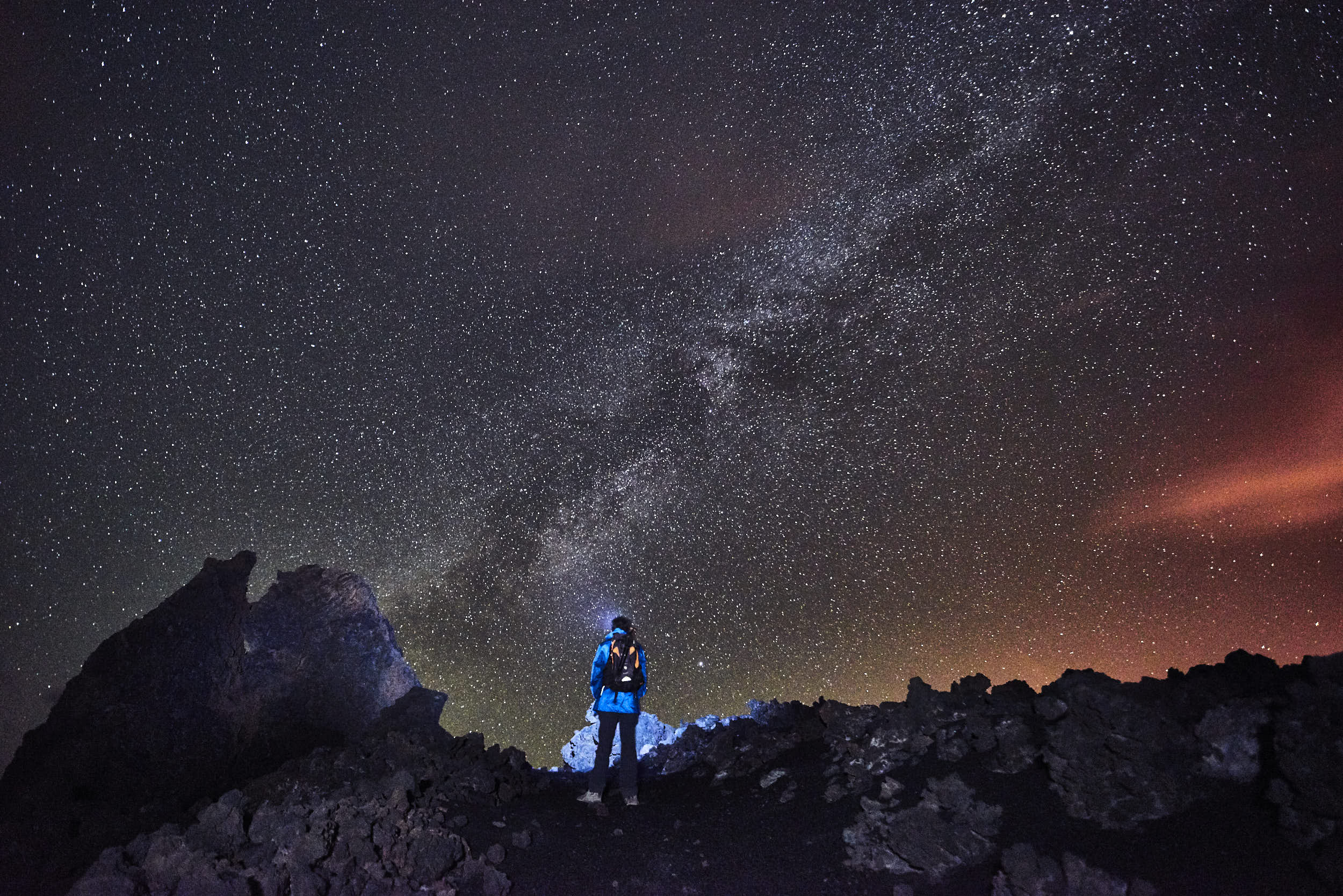 My reward, as I march across the volcanic sand and the roof of the gods opens up above me, is to truly feel my place in the cosmic scale of things. I look up to see that the Seven Sisters, or Pleiades, cluster of stars are very distinct, burning with a ghostly purple aura.