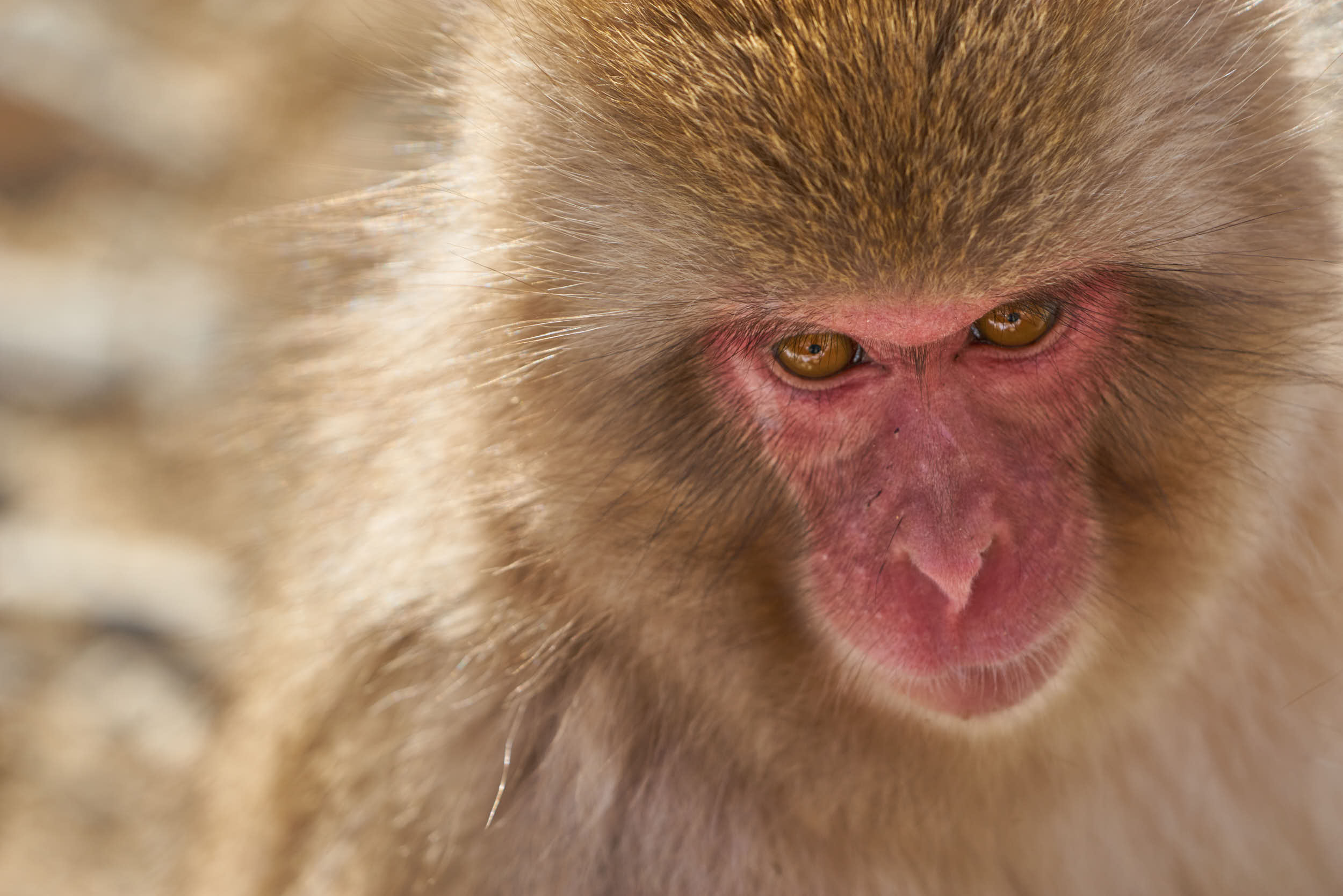 As we walk into the park a geyser of steam explodes up out of a tube of ice as the river runs past. The macaques are alternating between foraging in the snow and basking in the sun, or having the occasional dip. It’s too balmy for a mass soak but I spend a fascinating couple of hours watching the adults roam around while young macaques tumble through the rocks in a kind of good tempered, rolling brawl. It seems play is the order of the day in Japan, whatever species you are!
